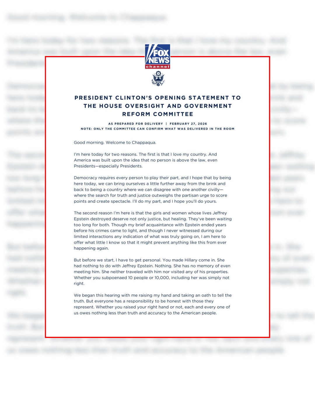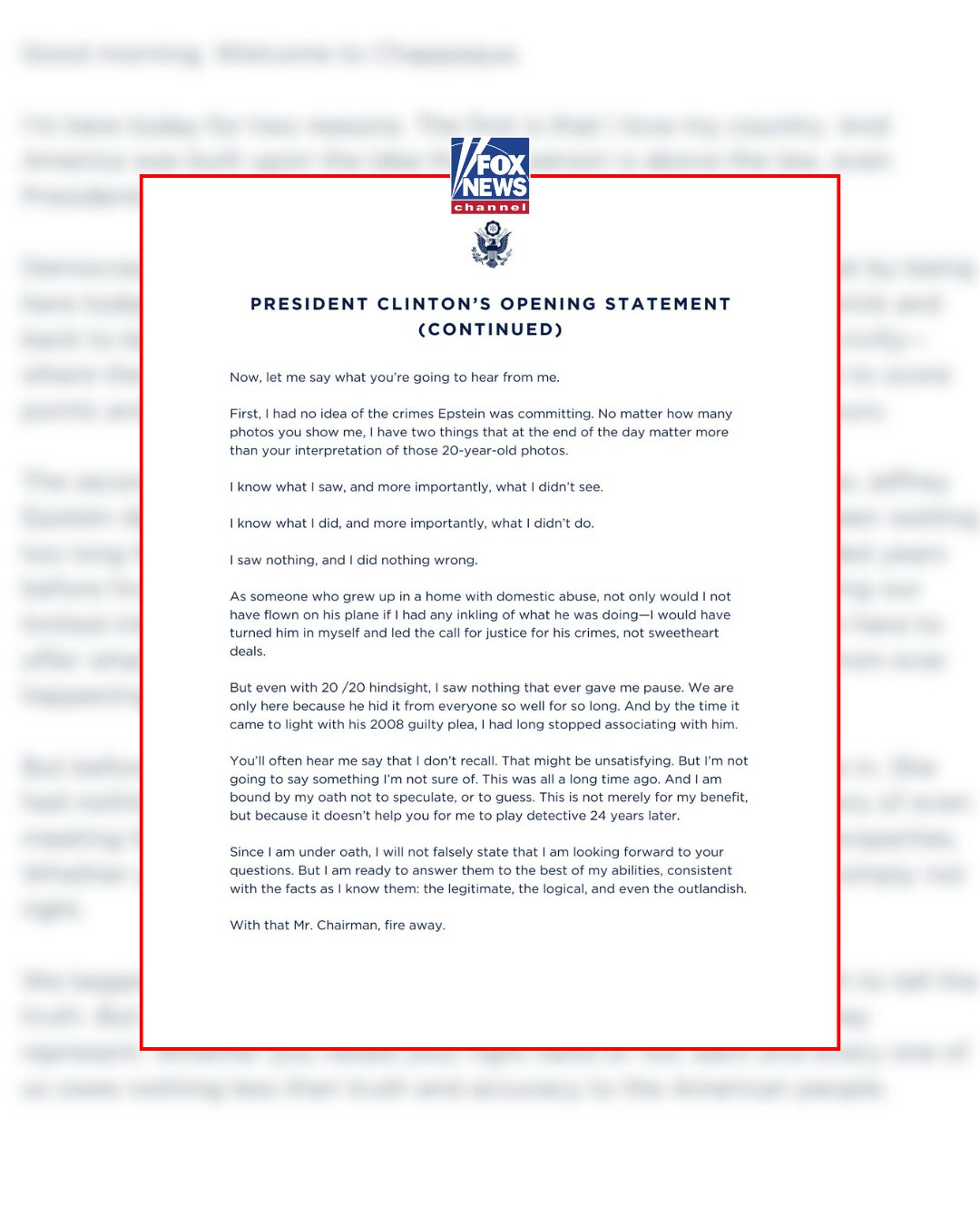 Former President Bill Clinton denies knowing anything about Jeffrey Epstein’s crimes throughout their years of friendship: "As someone who grew up in a home with domestic abuse, not only would I not have flown on his plane if I had any inkling of what he was doing—I would have turned him in myself and led the call for justice for his crimes, not sweetheart deals." "I saw nothing and I did nothing wrong."