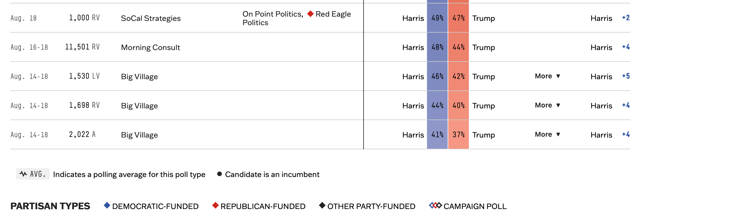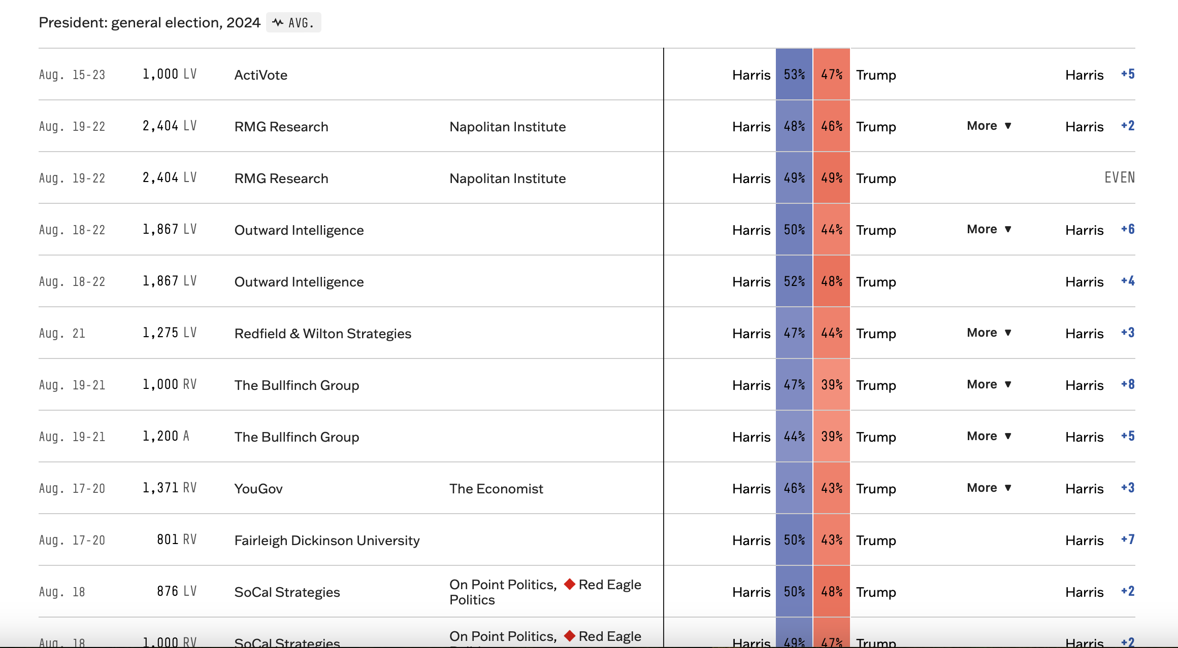 Harris +8, +7,+6 and +5 lol