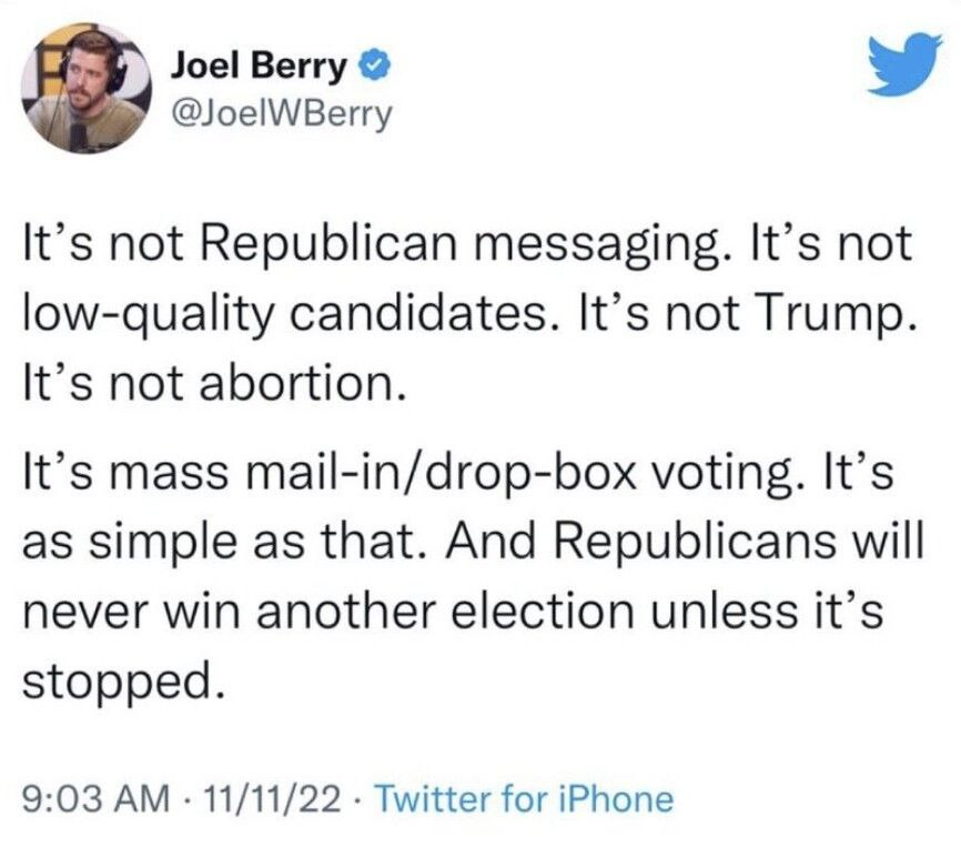 Biden has alot of bipartisan accomplishments. Dems aren’t great on messaging and all the right crazies are on social media making shit up. Stupid people fall for a lot of it. Republicans always make a mess when they govern, the people weren’t gonna give them control. It doesn’t work with them. Maga is extremely unpopular and it’s been soundly rejected for years.Q is not the reason why the Republicans under performed - though Q does not help - it’s abortion - and abortion alone - we have the worst President any living person has seen unless Carter is worse - and abortion will not be resolved on a federal level so it’s going to loom again - maybe Republicans should listen to Grahams proposal on a national 4 month period - just losing way too many female voters and encouraging young turnout