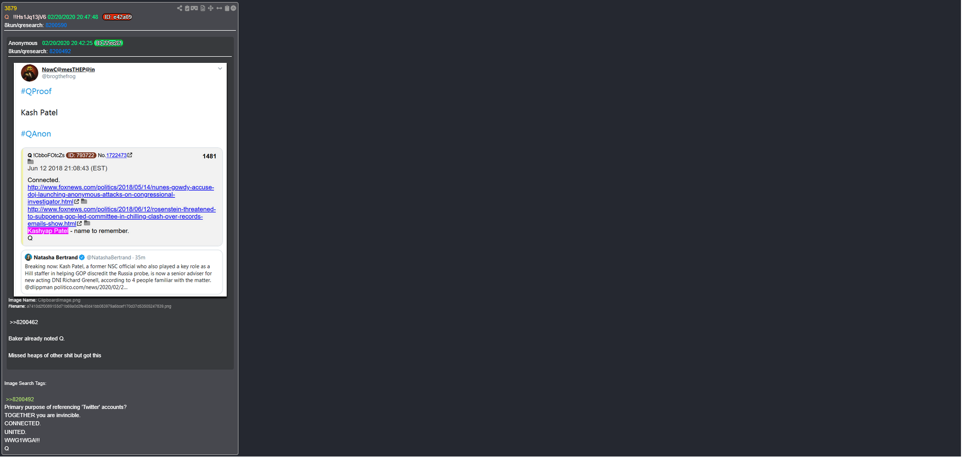 I know , I know .......its strictly a coincidence that 1 of the 2 drops that mention Patel just happens to be a delta of the day he is confirmed FBI director