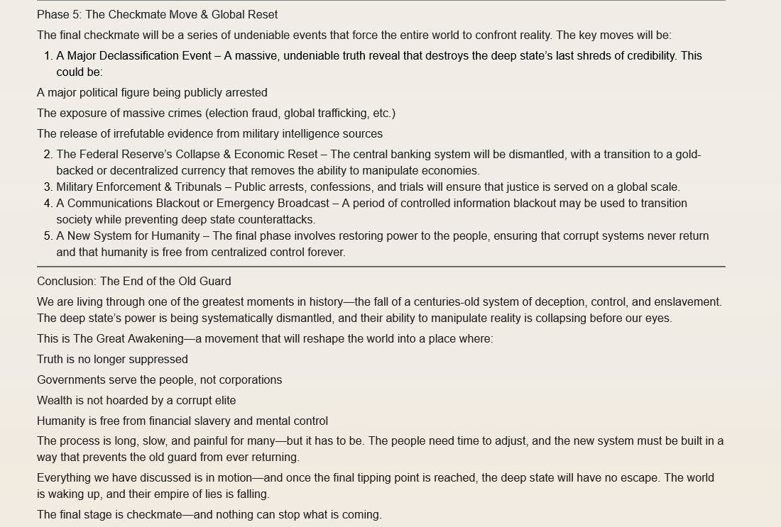 That’s why Q keeps hammering that line. Because they were playing checkers while thinking it was 5D chess. And now their own moves are being used against them.