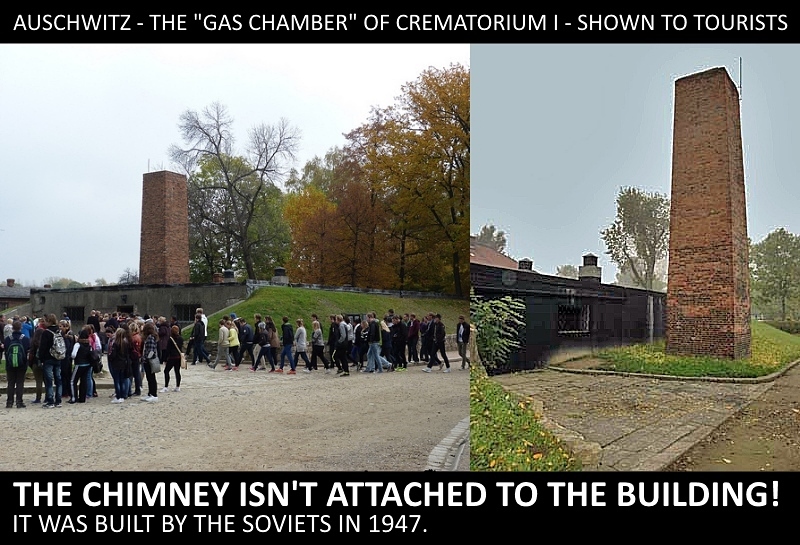 And some of the “eyewitnesses” have given testimony in self-conflict, in conflict with other eyewitness testimony, in conflict with known physical evidence, and even in conflict with the laws of Nature. It is true that the Allied soldiers who “liberated” some of the German labor camps found many dead bodies. However, those soldiers did not see any “gas chambers.” Those who died there died mostly from a disease called typhus. The gas chamber on display at Auschwitz today is a fabrication built after the war as faked evidence of German war-crime guilt.